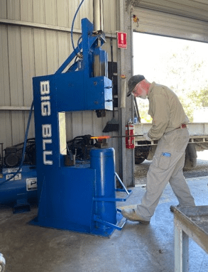 A.B.A.S.A’s Forge at Penfield has a new edition to the family. A Big Blu air driven power hammer is on site and being prepared for use. Chris F, Brian D and Andrew H delivered and tested the hammer just recently. At 1 cwt, it is not as intimidating as the Massey, so beginners will be more comfortable learning to forge down their work. Well done to the crew.