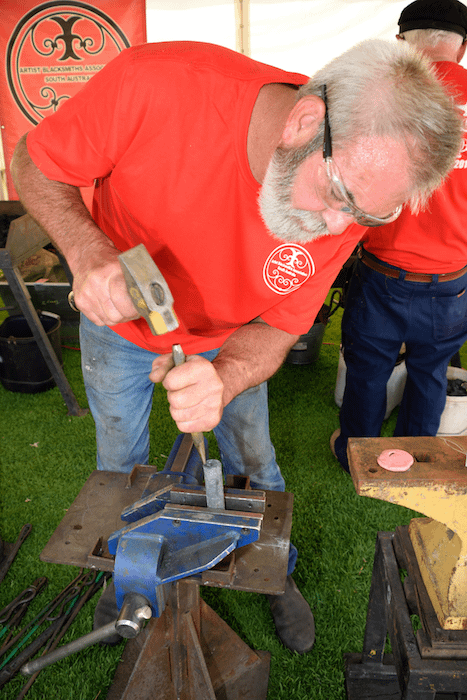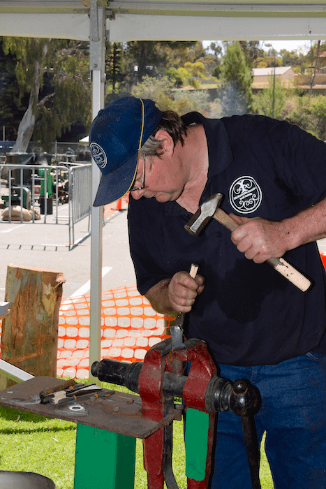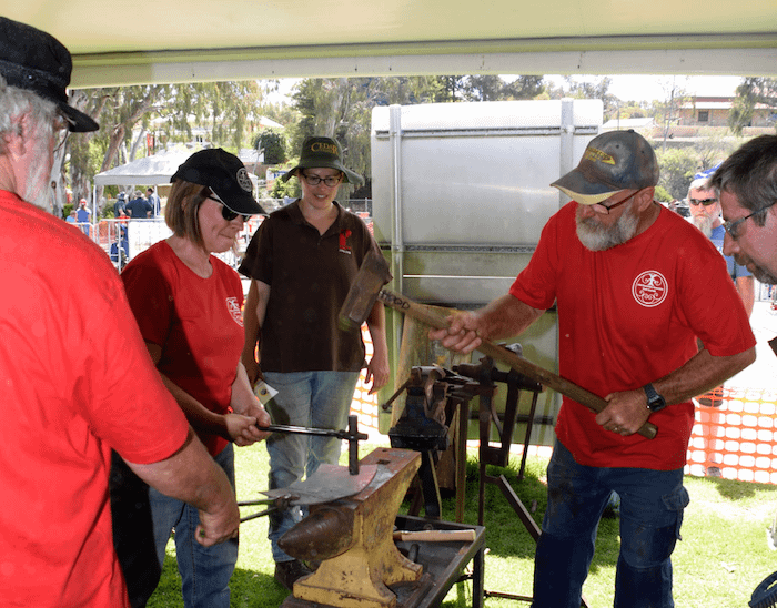 For many of the ABASA members, the work began on the Friday 18th. The equipment was delivered the previous weekend and the day began at 10am, with the setup of the forges and layout of the working spaces. With the additional support of the Mannum Council and Museum workers, the event structure developed through the day in readiness for the early start on Saturday.