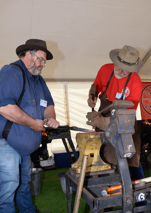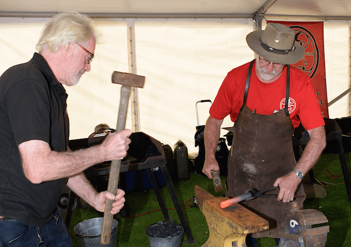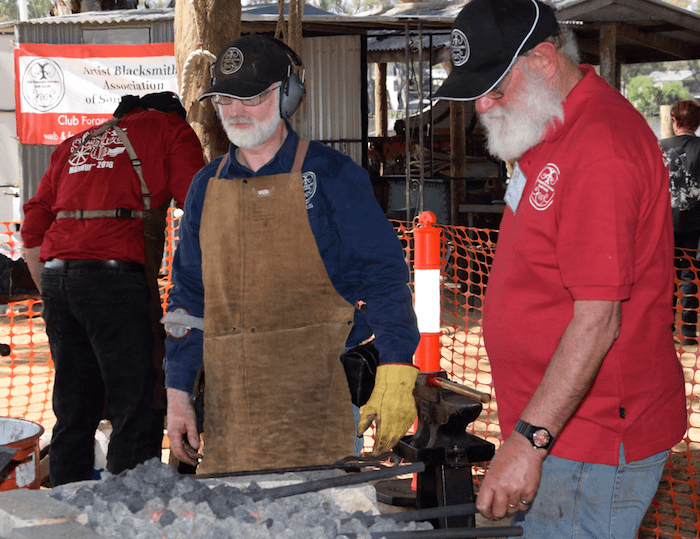 For many of the ABASA members, the work began on the Friday 18th. The equipment was delivered the previous weekend and the day began at 10am, with the setup of the forges and layout of the working spaces. With the additional support of the Mannum Council and Museum workers, the event structure developed through the day in readiness for the early start on Saturday.
